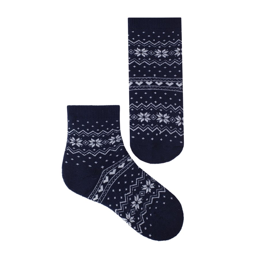 Стильные детские носочки с зимним рисунком, хорошо смотрятся на ножке ребенка. Благодаря натуральному хлопку, преобладающему в составе изделия, ребенку будет комфортно и удобно. Мягкая резинка плотно облегает ножку не сдавливая ее. Модель подходит для повседневного использования. Особенности: * Зимний рисунок * Износостойкие * Изготовлены из высококачественного сырья с соблюдением всех требований к производству детских чулочно-носочных изделий